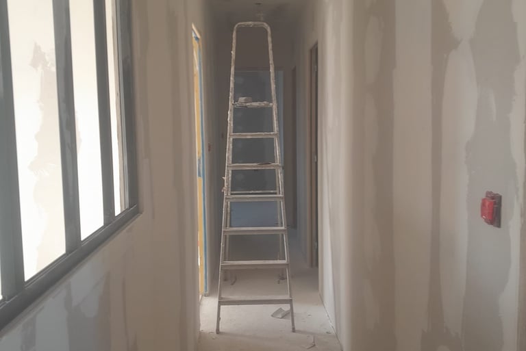 Nous posons des plaques de plâtre adaptées à chaque situation (standard, hydrofuge pour les pièces d'eau, phonique pour le confort acoustique), nous tirons les bandes, et nous réalisons les enduits de finition pour vous livrer des murs et plafonds parfaitement lisses, prêts à peindre. C'est le travail invisible qui conditionne tout le reste.